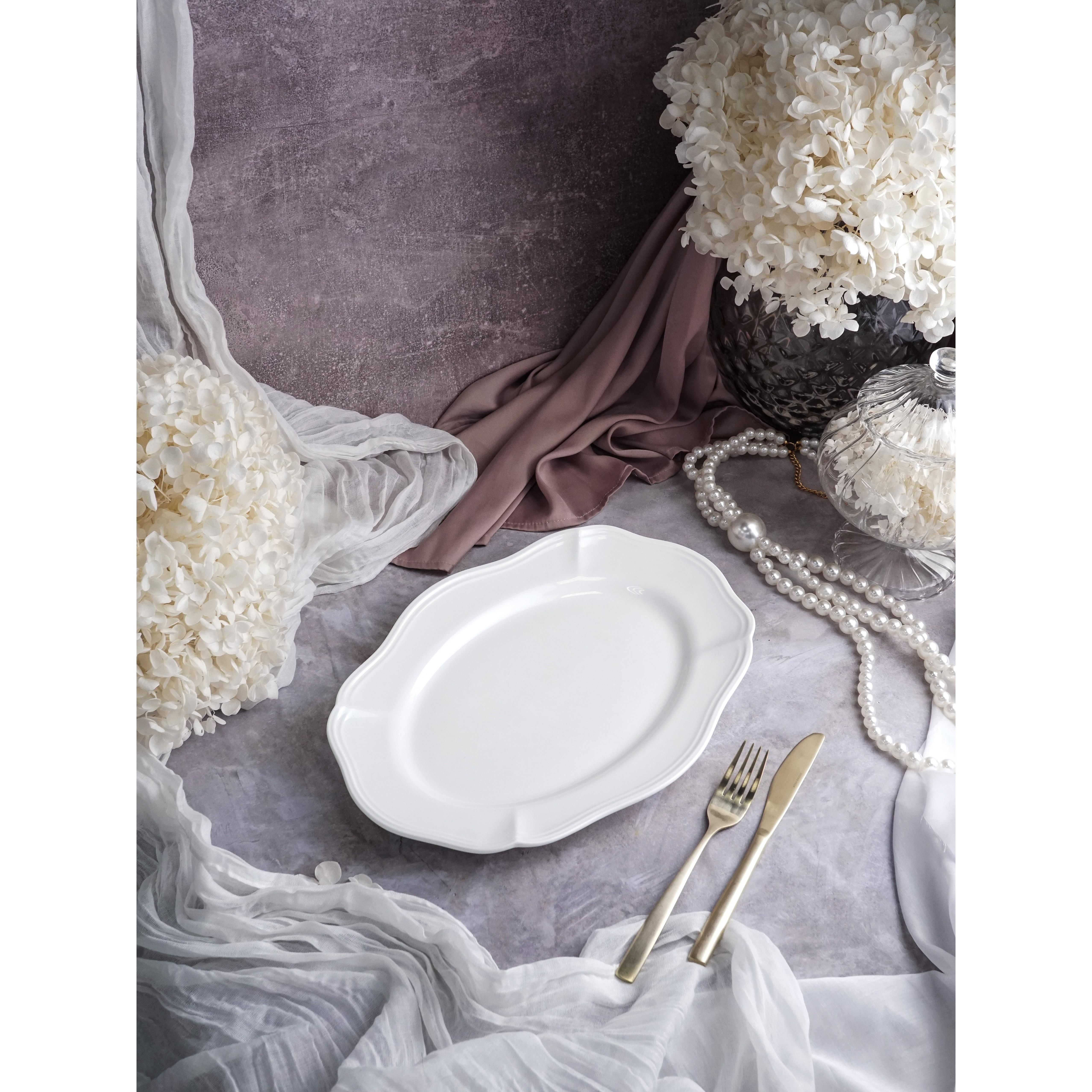 Блюдо выполнено из качественного фарфора. Изящная форма позволяют эффектно подавать любые блюда, превращая каждую трапезу в маленькое искусство.