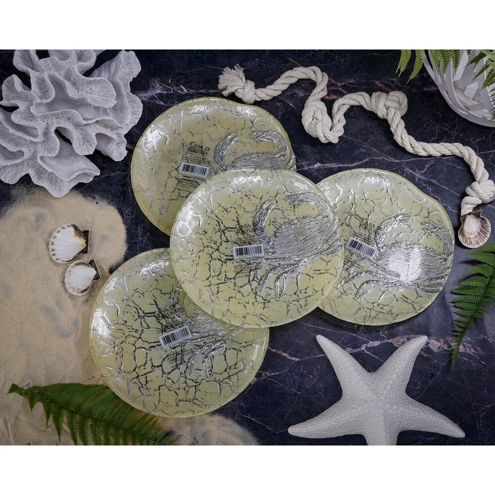 Набор обеденных тарелок 21,5 см MonoCrab, 4 шт., цвет пастельно-желтый с серебристым декором, Casa di fortuna